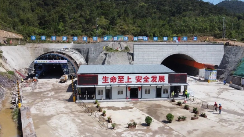 關(guān)山萬千重,山高人為峰。肇明高速穿越山嶺重丘區(qū),這里山巒疊嶂,溝壑縱橫,全線共設(shè)隧道4條,其中特長隧道1條,長隧道3條,橋隧占比55.12%。施工難度最大、技術(shù)要求最高的當(dāng)數(shù)楊梅特長隧道,作為本項目的又一個控制性工程,隧道全長4511米,位于西江與南廣鐵路之間,所處地段地質(zhì)條件復(fù)雜,存在涌水、巖溶等不良地層,給施工帶來極大挑戰(zhàn)。