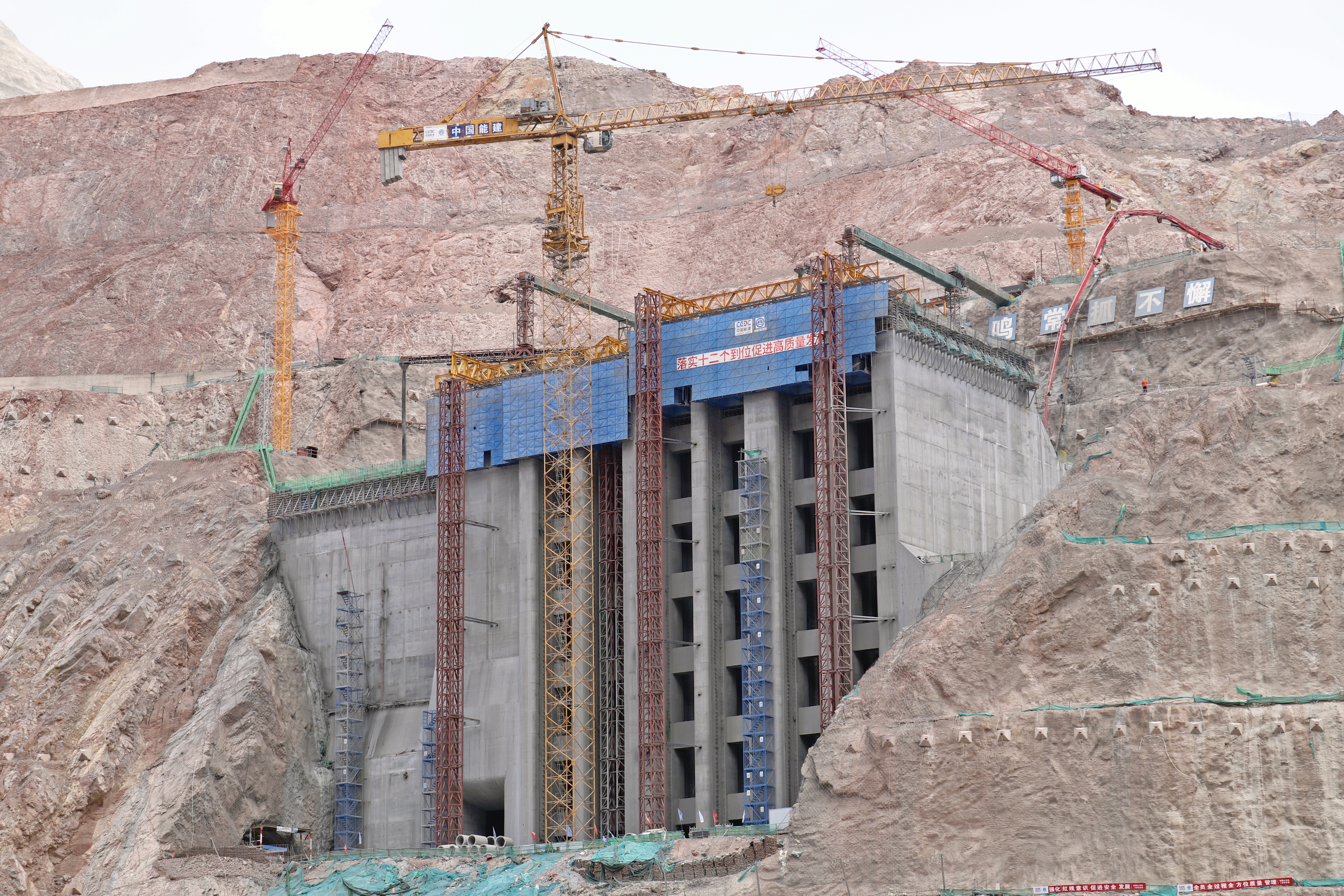 在新疆大石峽水利樞紐工程聯(lián)合進(jìn)水口施工現(xiàn)場,借鑒城市高層建筑“造樓機(jī)”技術(shù)而研發(fā)的長行程、大噸位智能“造塔機(jī)”,開創(chuàng)了在水利水電工程建設(shè)中對進(jìn)水塔進(jìn)行液壓頂升整體模架模塊化設(shè)計及應(yīng)用的先河。項目部總工程師高建福說,自智能“造塔機(jī)”運用至今,共完成模板頂升39次,減少人工提升模板近6萬平方米,節(jié)約工期約195天。相比于傳統(tǒng)施工方式,提升施工效率約1.5倍。